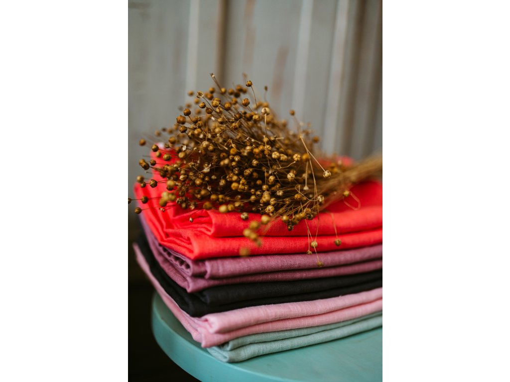 - Gramáž látky 230g/m2, 87% len, 13% bavlna (přísada je kvůli měkkosti, 100% len je příliš tvrdý)